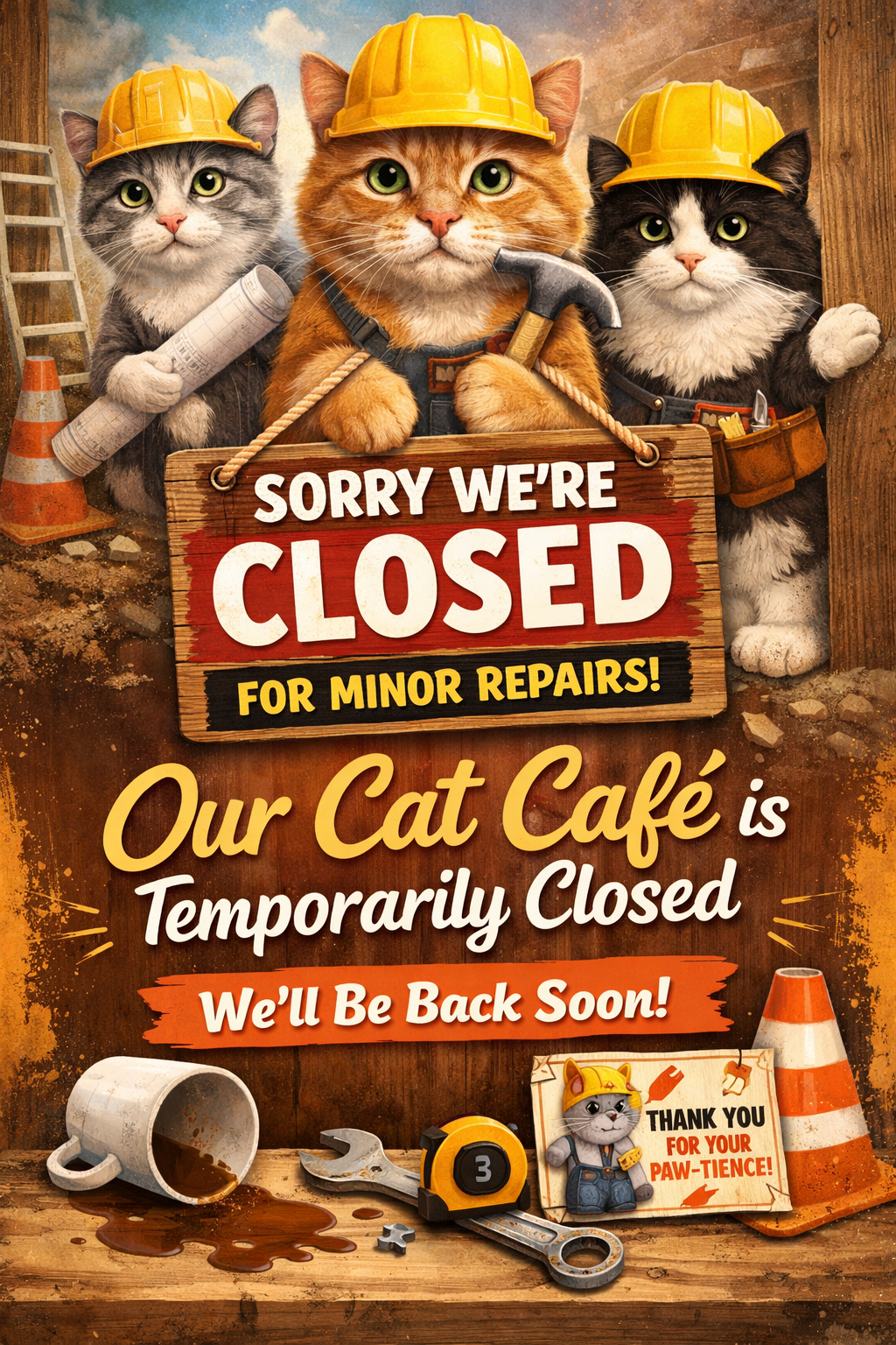 We apologize but the Cat Cafe will be closed all day Monday March 2nd while we make some upgrades to the outdoor area for the cats.